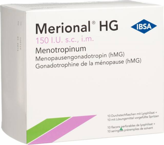 Merional 150 (Menotrophin-Injektion) ist eine Mischung aus follikelstimulierendem Hormon (FSH) und luteinisierendem Hormon (LH), die aus dem Urin postmenopausaler Frauen gewonnen wird. Merional 150 wird zur Behandlung von Unfruchtbarkeit, zur Auslösung des Eisprungs, zur Ermöglichung einer Schwangerschaft bei Frauen und zur Unterstützung des Körpers bei der Produktion mehrerer Eizellen während des Eisprungs als Vorbereitung für eine In-vitro-Fertilisation verabreicht. Es kann auch verwendet werden, um die Produktion von Spermien bei bestimmten Formen der männlichen Unfruchtbarkeit zu stimulieren.